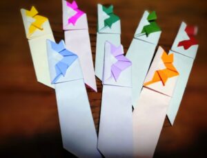 - てふてふ舞いはじめる晴れの日は主にテラス席・雨の日は全テーブルにお箸を包み込んだ状態で舞い降ります