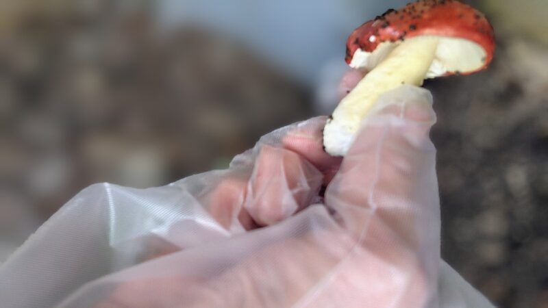 ママが傘のところがベロンと開ききっていないのでまだ胞子は飛ばさないから近所に増やさないように今のうちにと、