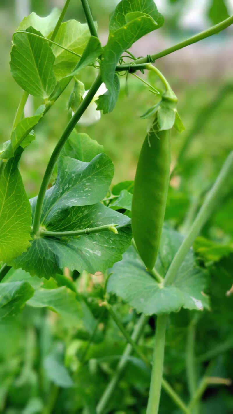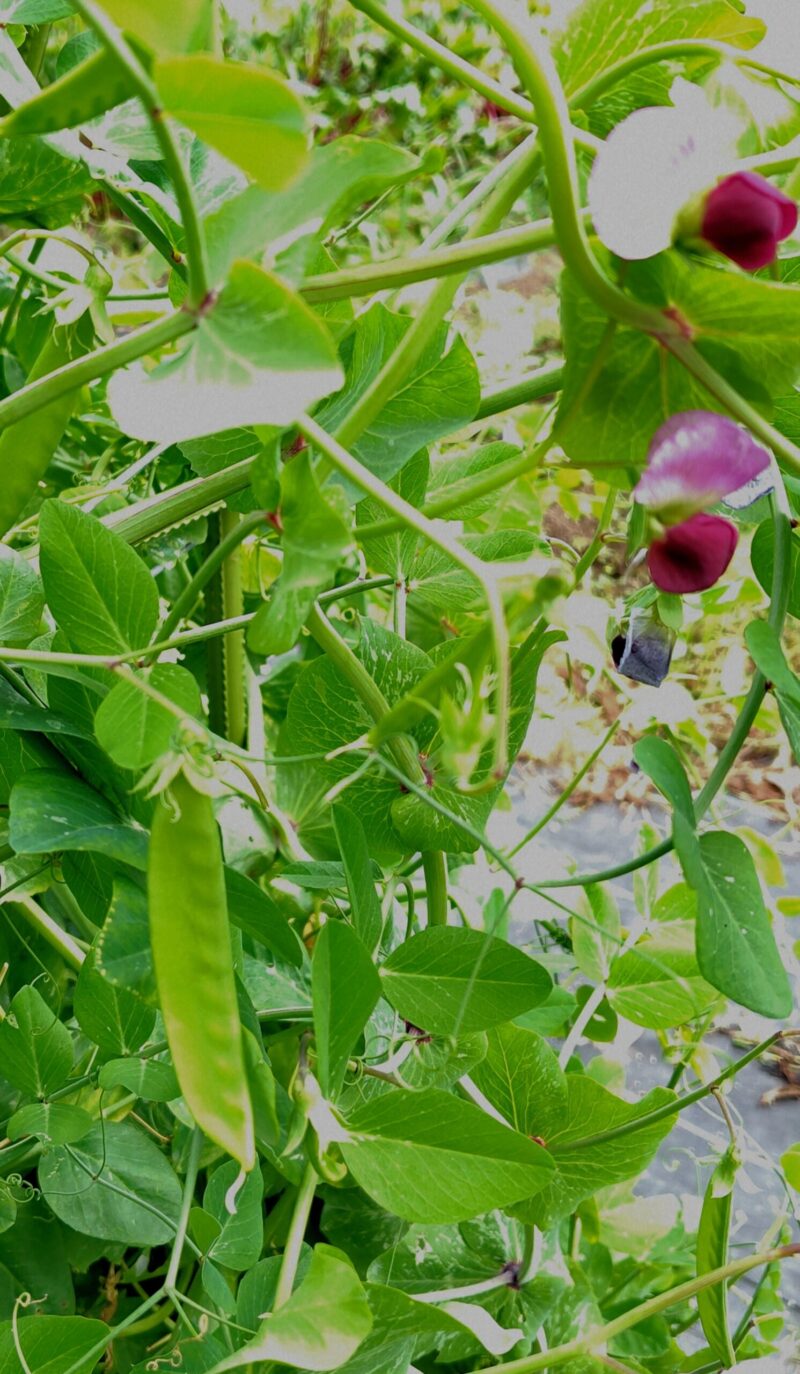 きぬさやもピンクの花が咲いた後、豆の実をつけています。エシャロット(らっきょ)もほぼほぼ成人?