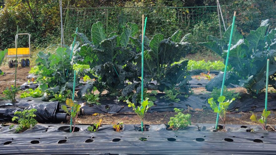 赤ちゃんだったお野菜達がぐんぐん成長しています。新しい野菜(ケールッコラ・ちんげんルッコラ・ちからこぶザーサイ)の苗も。